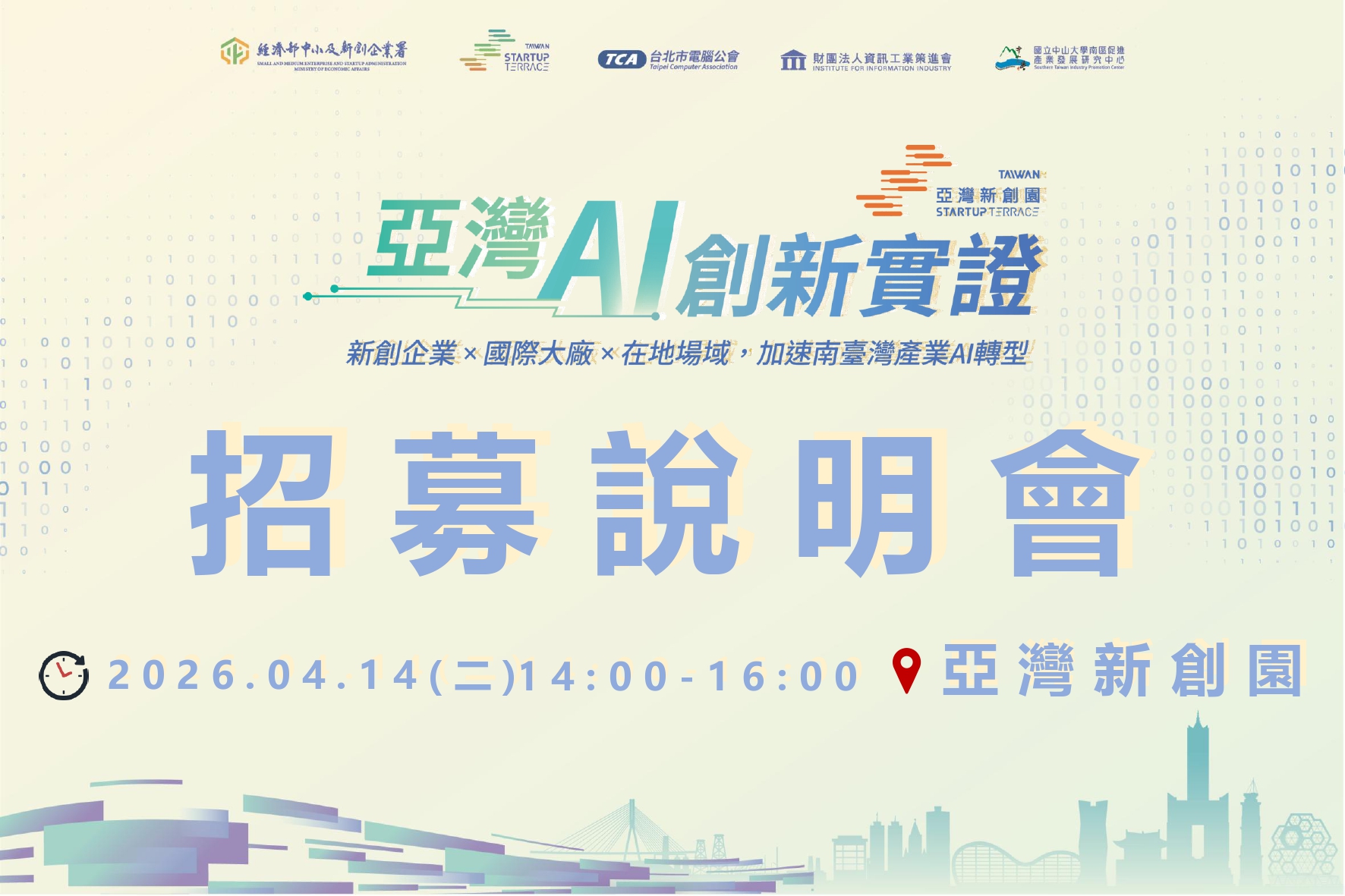 本次說明會將完整介紹「亞灣AI創新實證計畫」之徵案內容、申請流程與相關資源,並邀請國際科技大廠分享AI技術趨勢與產業應用觀點,同時由新創團隊分享實務經驗,協助參與團隊快速掌握產業需求脈動,深化對技術落地與合作機會之理解。