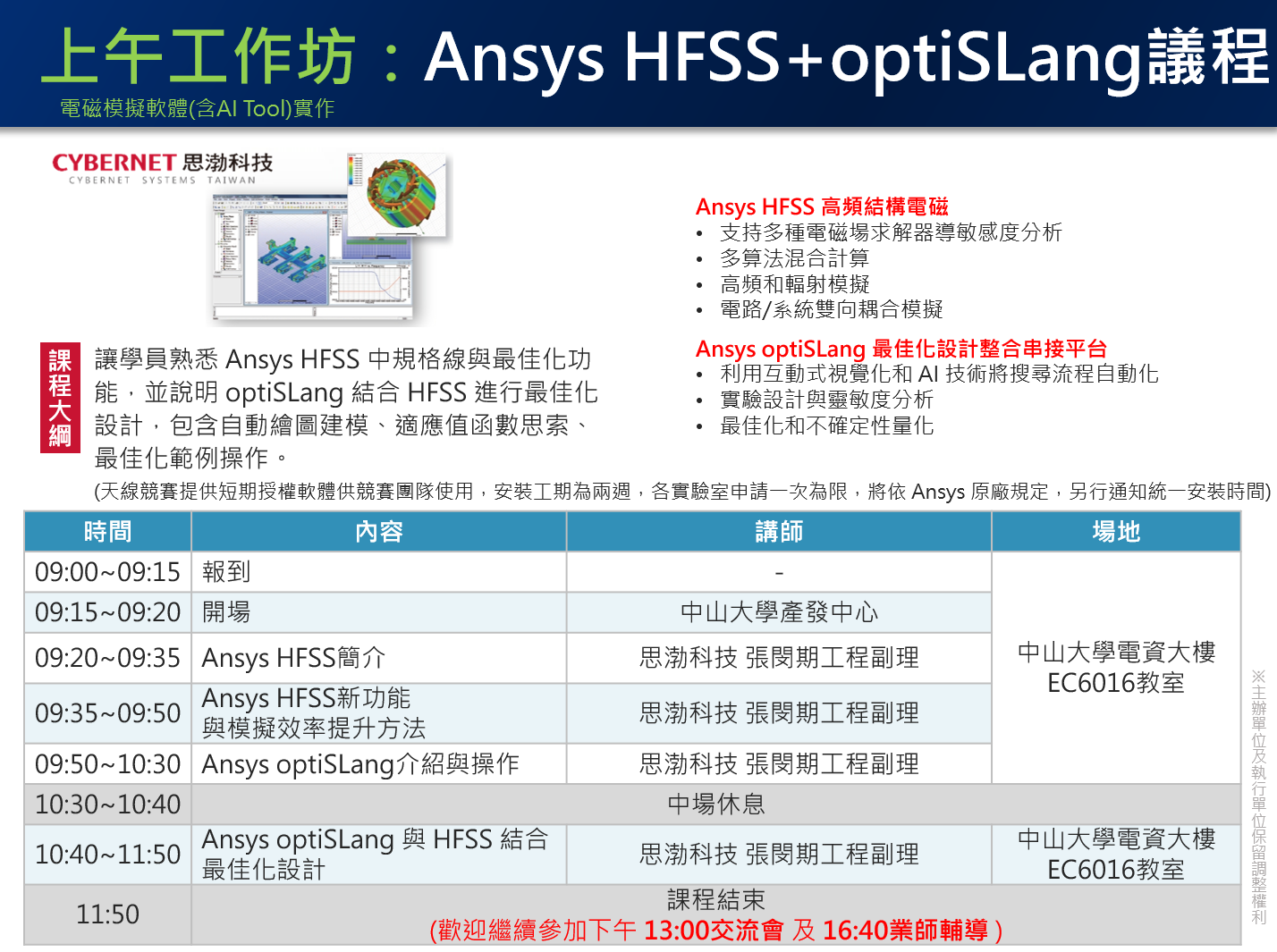 09:00-12:00【ANSYS HFSS+optiSLang 工作坊】#實體