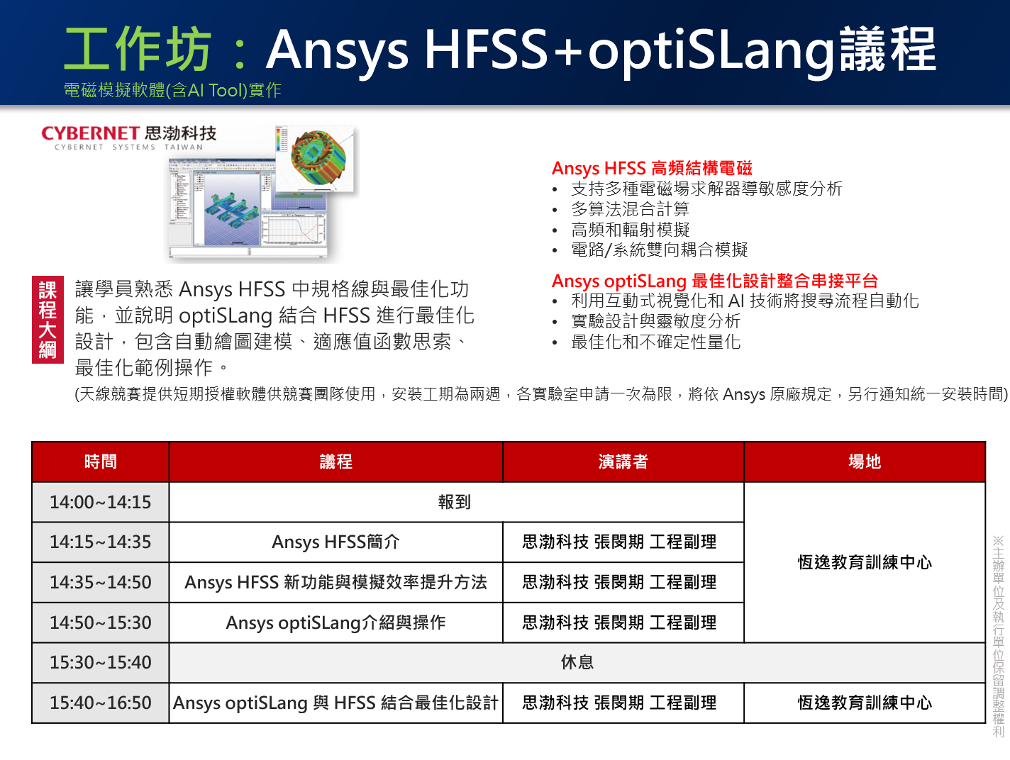 【活動內容】 ANSYS HFSS + optiSLang 工作坊 (臺北場)