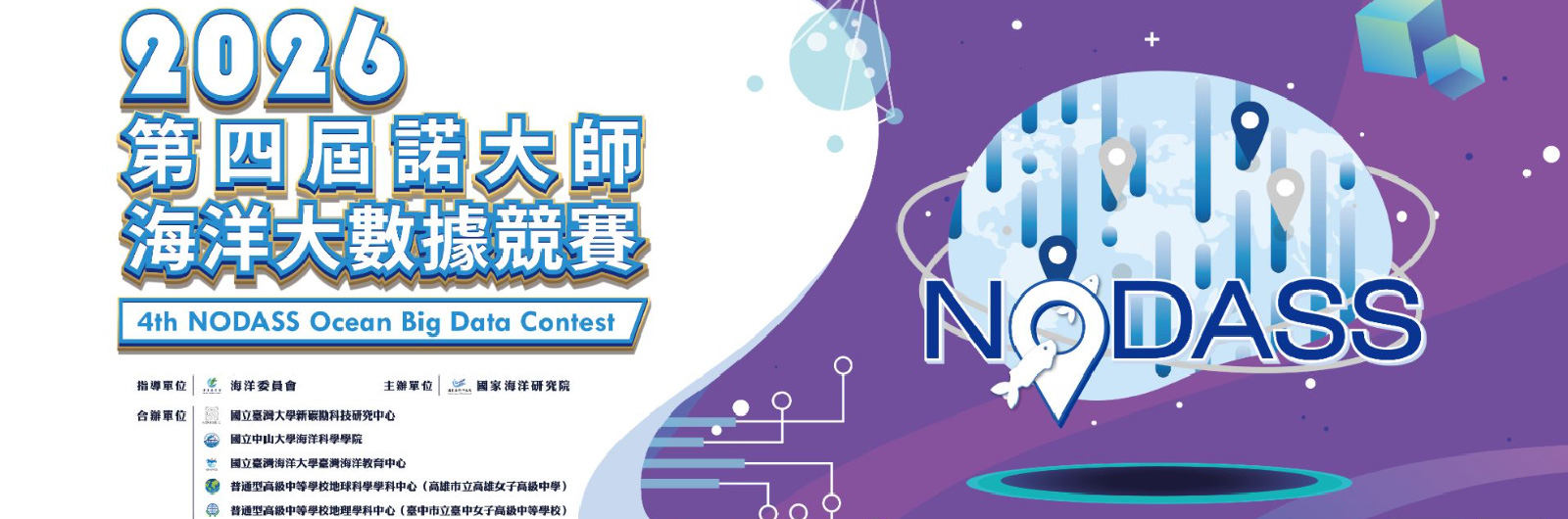 為持續「培植國內海洋相關領域之人才」與「推廣NODASS共享平台」相關技術上之應用,辦理「2026第四屆-諾大師海洋大數據競賽」,以「NODASS海洋大數據」為主題,邀請大專組及高中組的同學組隊參與,透過團隊合作研擬創新提案及參與競賽,期許培育以海洋大數據為基礎之探究與實作人才,並持續推動打造海洋素養典範國家之目標。